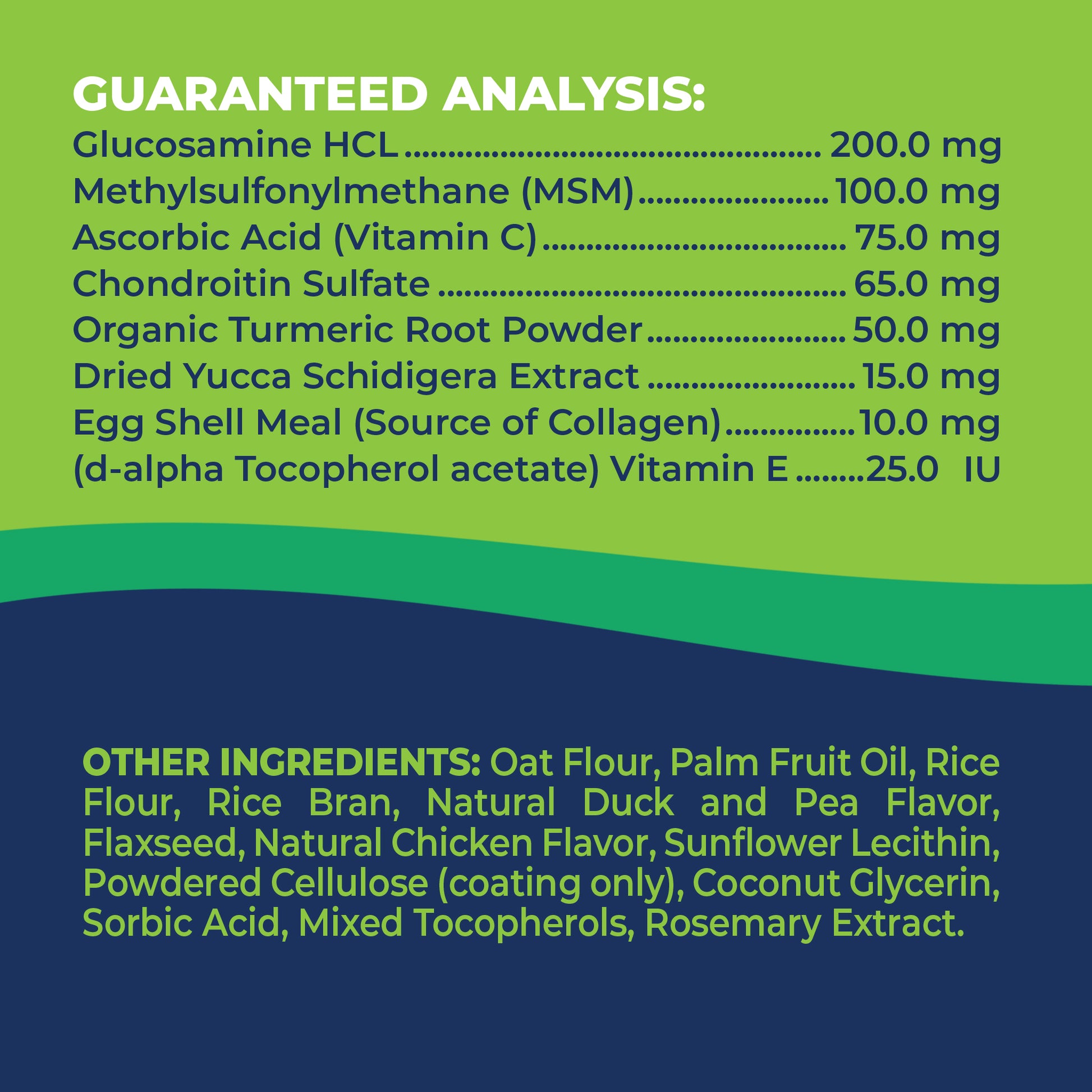 Our Chicken & Duck Flavor will satisfy your dog's pallet while preventing joint discomfort in younger dogs and promoting long-term joint health/mobility or reducing painful stiffness and inflammation in older companions.