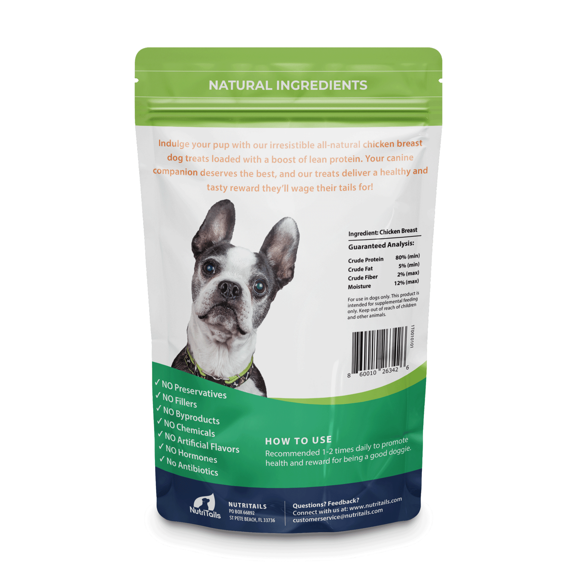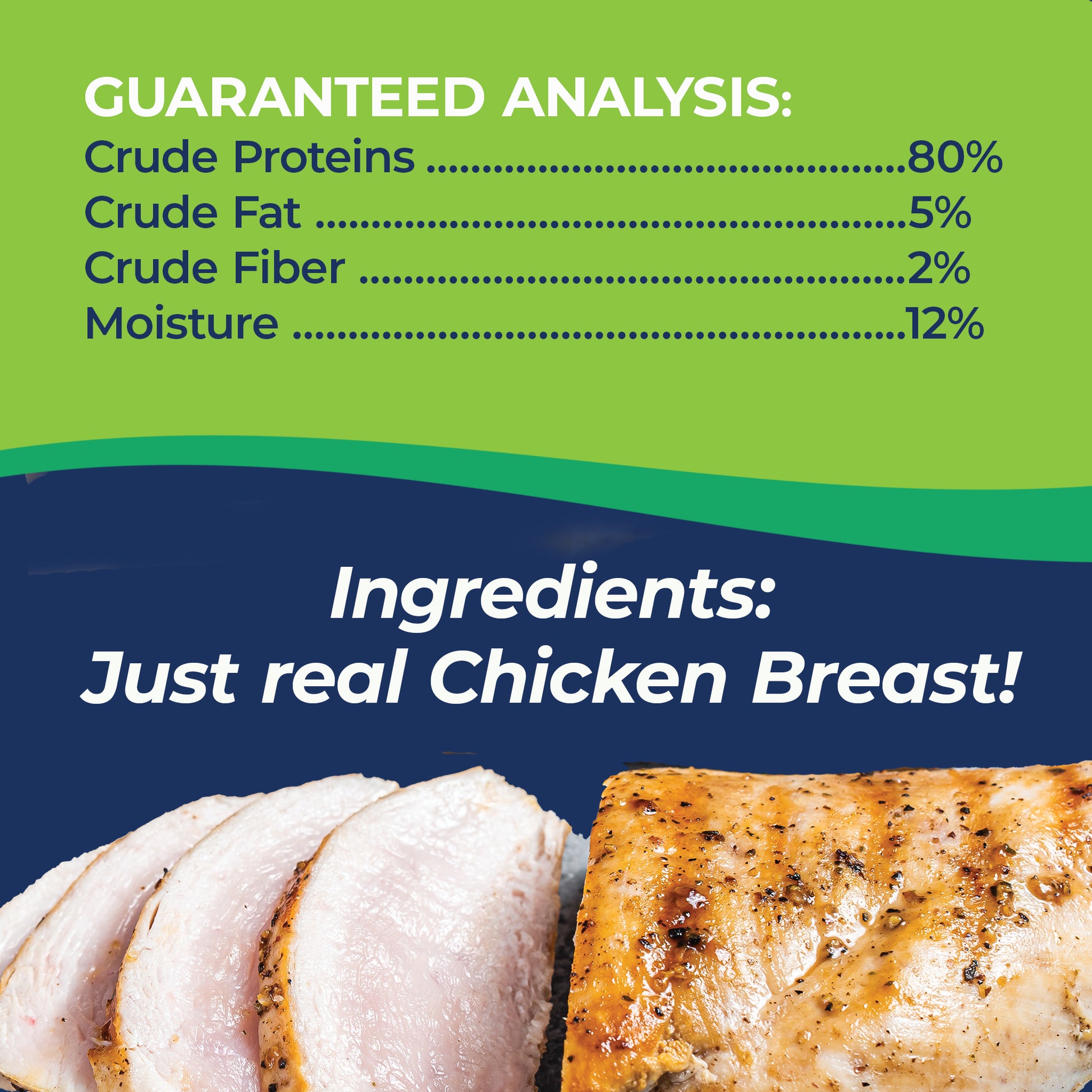 Just one ingredient: 100% Natural, USDA-Inspected Chicken Breast