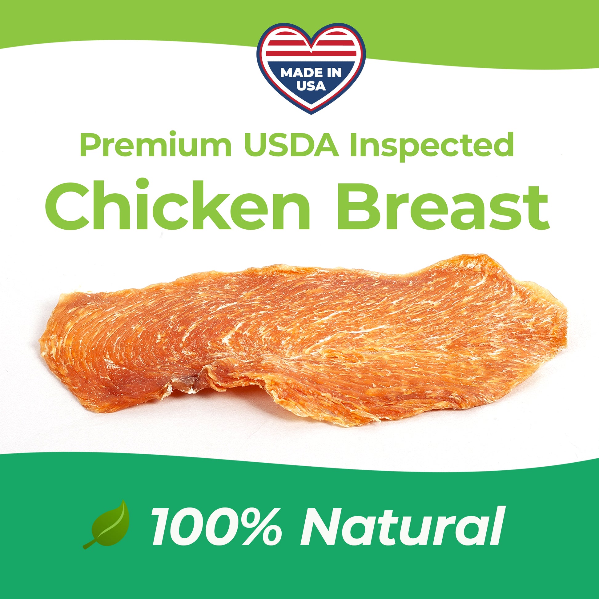 Proudly Made in the USA with USDA inspected chicken breast Sourced in the USA, our treats guarantee the highest standards of quality and safety. Each treat is made from premium, human-grade chicken breast, ensuring a protein-packed delight that mirrors the natural diet of your dog's ancestors.